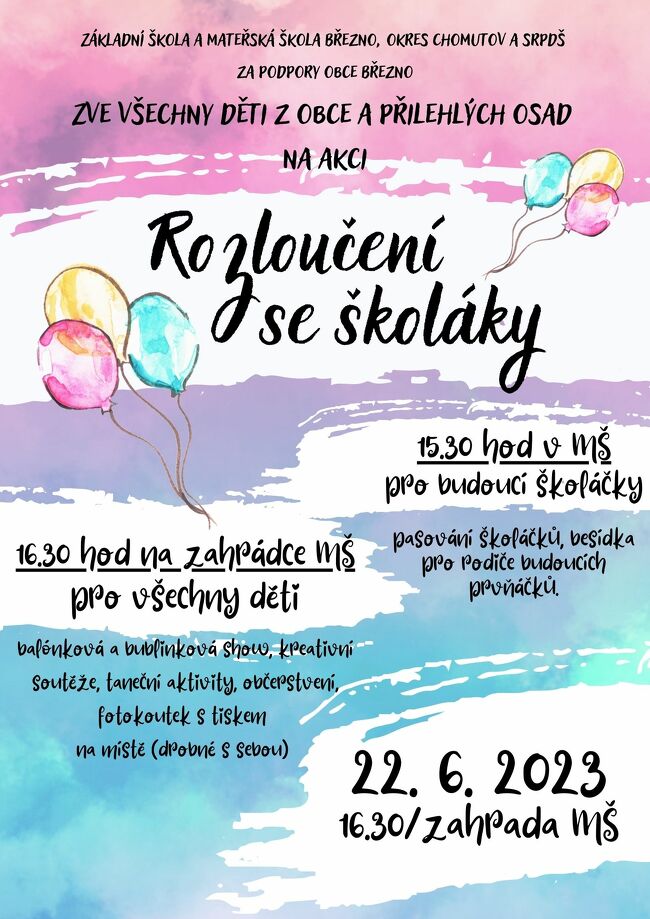 Dne 22. 6. 2023 pořádáme akci na počest všem budoucím prvňáčkům. Přijďte to s námi oslavit...