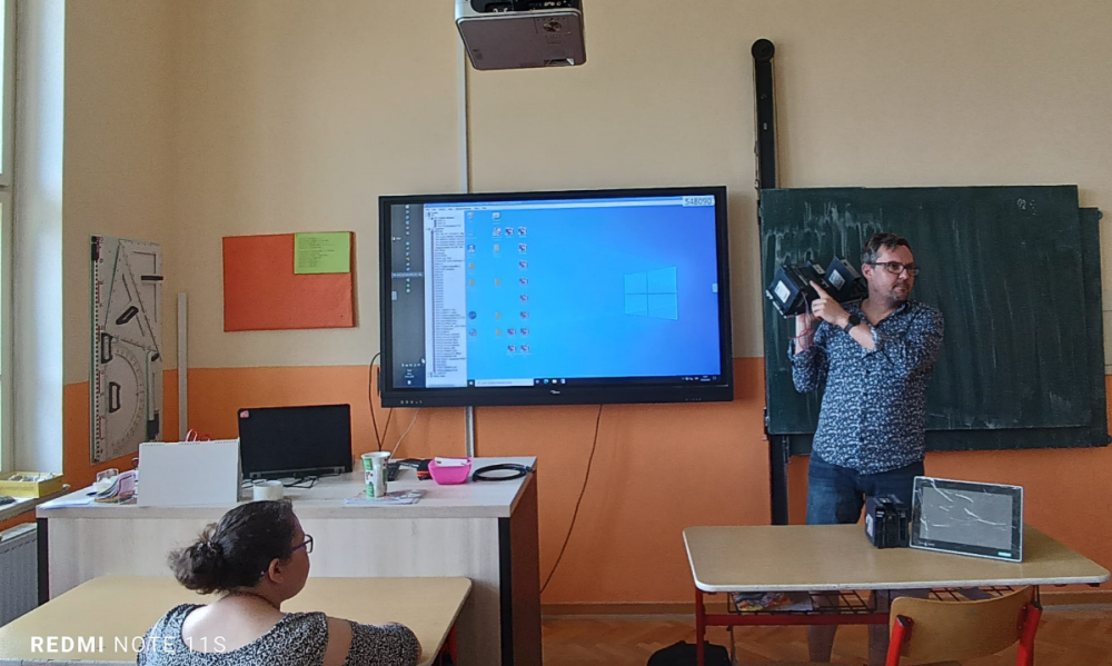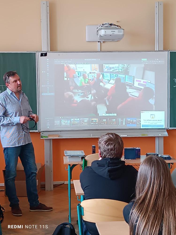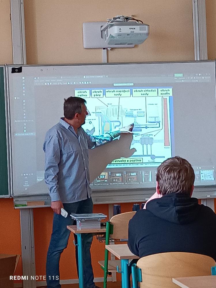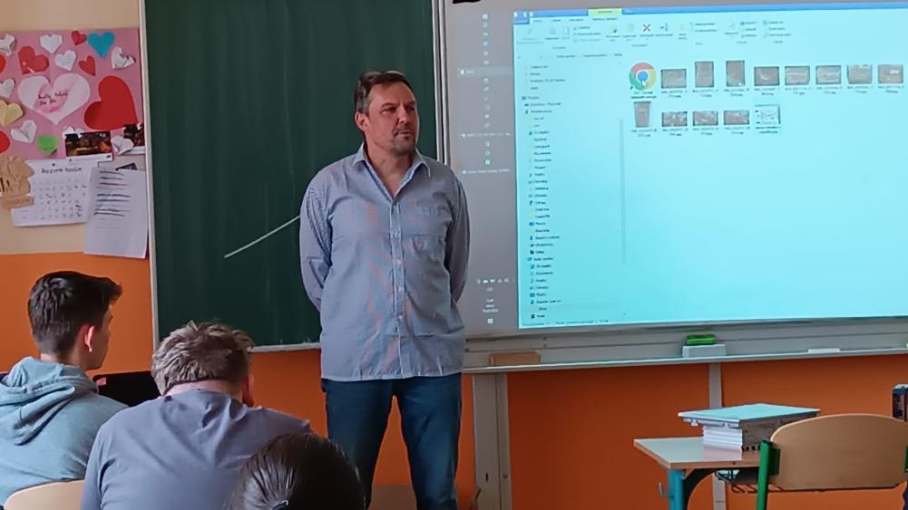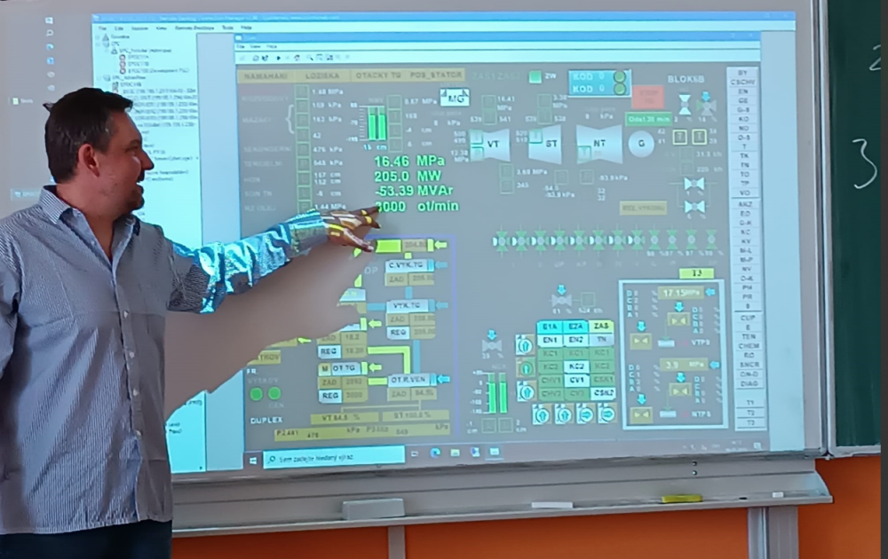 Informovat žáky o využití počítačů v průmyslové výrobě přijal programátor z elektrárny Počerady pan Miroslav Kunc. Ve dvou výukových blocích žákům prezentoval své zkušenosti z programování, ukázal řídící jednotky využívané při výrobě elektrické energie v Počeradech a samotné velící středisko. Žáci si vyslechli, jaké možnosti poskytují počítače pro řízení technologického procesu a jaké znalosti musejí mít pro práci programátora. Přednáška přinesla do výuky prvky praxe, které by mohly budoucím deváťákům pomoci se rozhodnout při výběru školy.