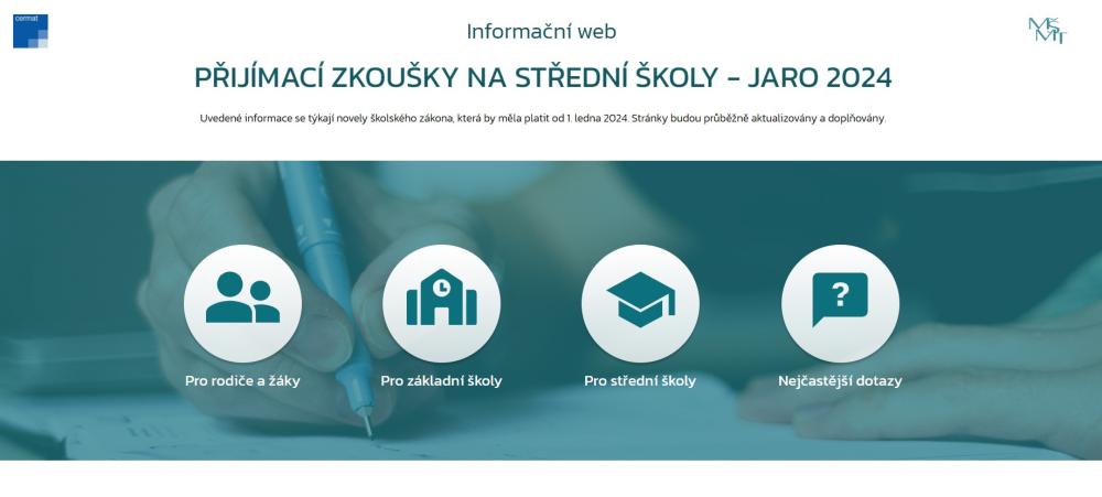 Dnes spustilo MŠMT webové stránky k přijímacímu řízení. Veškeré další informace najdete i na našich stránkách v rubrice Přijímací zkoušky na SŠ