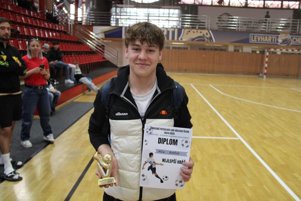 V chomutovské sportovní hale pokračovala Žákovská futsalový liga nadstavbovou části. V kategorii 8.- 9.třid nám citelně chyběli hráči i tak tým kolem Milý Dvořáka nedal kůži zadarmo a i když obsadil až 4. místo patří můj dík jejich bojovnosti. Úspěchem byla opět individuální cena za nejlepšího hráče turnaje , kterým se stal Milá Dvořák.