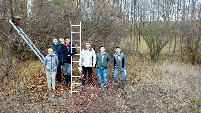 3.11.2017 opět žáci naší školy pomáhají s instalací ptačích budek v areálu Severočeských dolů, na místech kde dochází k obnovování krajiny po těžbě uhlí.