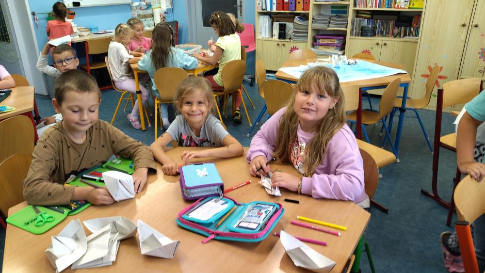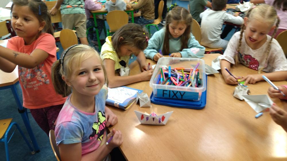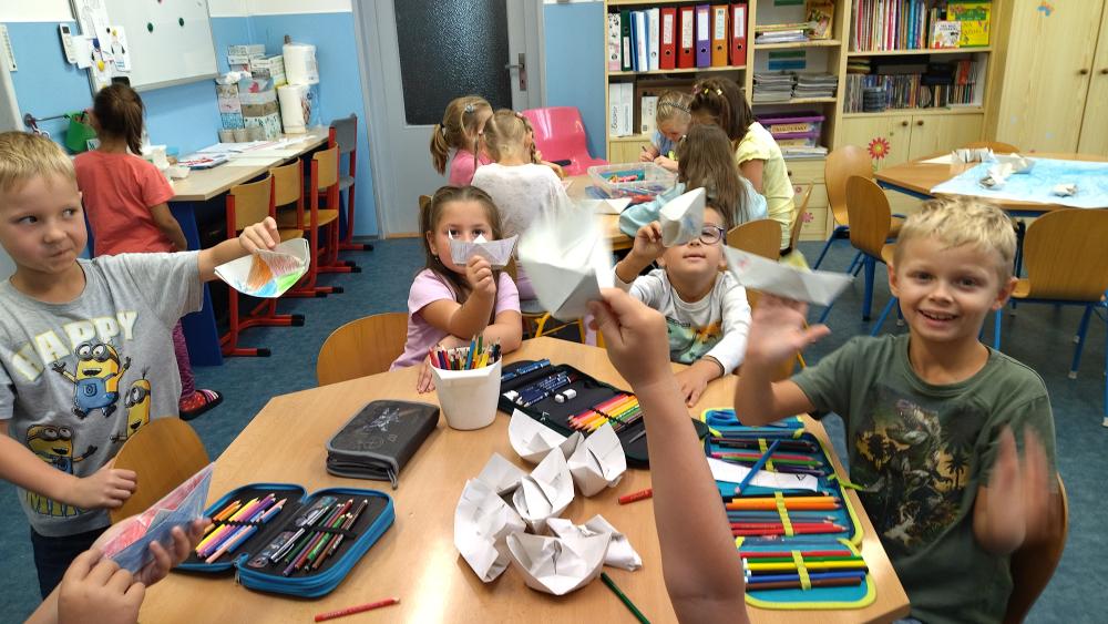 vyrábíme, tvoříme, učíme se novým dovednostem, zažíváme spoustu nových zážitků, tančíme, zpíváme, učíme se hrát na hudební nástroje a mnohé jiné. Každý měsíc pořádáme námořnické dny, kdy děti soutěží, tančí, plní úkoly, řeší hlavolamy. Během uplynulých měsíců jsme si užili spoustu legrace a prožili nespočet krásných společných chvil při pouštění draků, halloweenské párty, na čertovském odpoledni či karnevalu. Po přivolání jara jsme začali tyto naše společné chvilky trávit venku, kde jsme hráli různé míčové a pohybové hry, hráli si na hřišti, procházeli se po okolí, soutěžili v rychlostních a pohybových dovednostech. Zažili jsme toho samozřejmě mnohem víc a do okamžiku, kdy nám naposledy zazvoní a děti si půjdou užívat prázdniny nás ještě mnoho zážitků čeká. Už teď se těšíme na společné spaní ve školní družině, které již brzy proběhne.