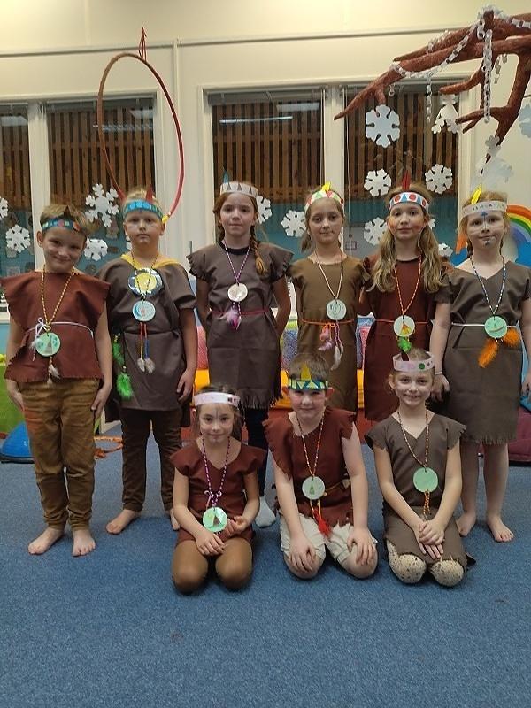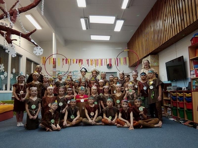 Po odpočatém víkendu nás čekal v pondělí indiánský karneval. Předcházely tomu přípravy kostýmů, které si děti z velké části tvořily samy. Společně jsme vyrobili šaty, vestičky, čelenky a talismanový náhrdelník. Holčičky měly z domova upletené copánky a kostýmy byly kompletní.