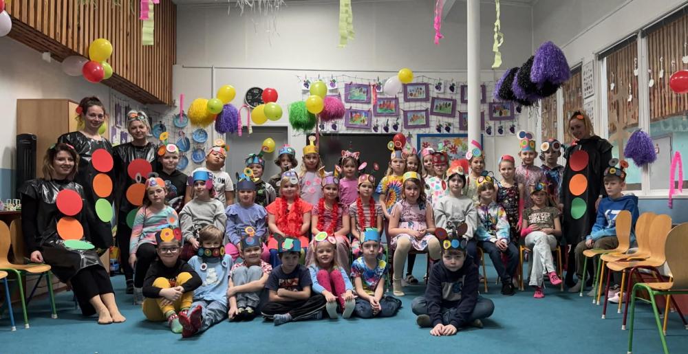Dne 26. 2. se ve školní družině konal „Barevný karneval“, který byl plný radosti, smíchu a pestrých kostýmů. Děti si navíc samy vyrobily barevné čelenky, kterými krásně doplnily svá barevná oblečení.
