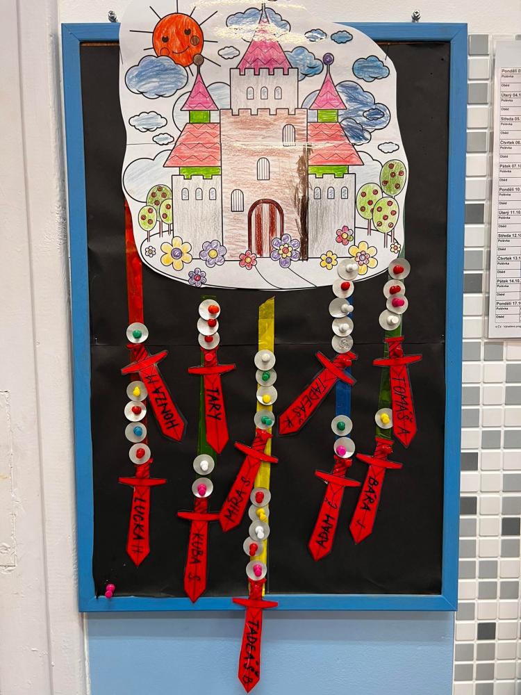 Letošní rok jsme pojali pohádkově, hrajeme si na rytíře. Děti za splněné úkoly sbírají razítka do deníčku a stříbrňáky v cestě za pokladem hradu, za který pak získávají pohádkové prašule. Na konci roku se vydají do pohádkového obchodu, kde si budou moci za peníze něco koupit.