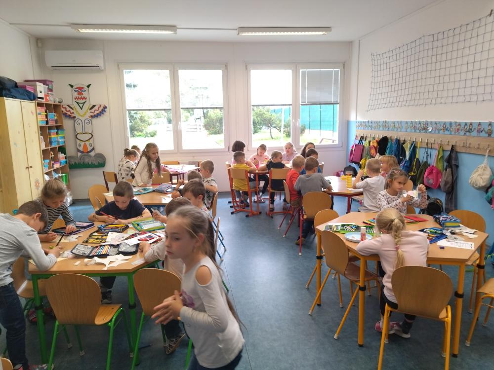 Zahájili jsme nový školní rok a už máme první měsíc za sebou. Stihli jsme toho mnoho. Seznámení prvňáčků a přípravné třídy- Dráčata, s novým prostředím. To znamená s chodem školní družiny, správným stolováním ve školní jídelně, kde děti prokazují svoji samostatnost. Starší děti, které už znají pravidla družinky, se rády ujaly role učitele a nováčkům vše potřebné pověděly a ukázaly.