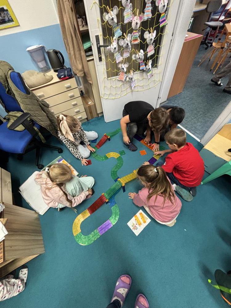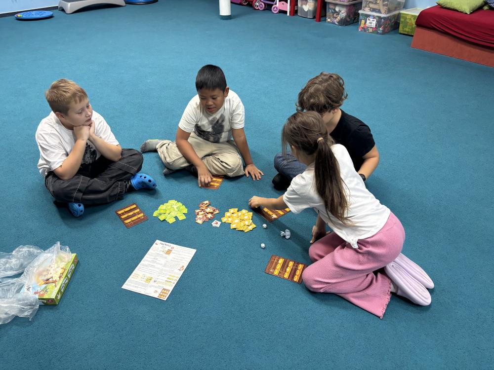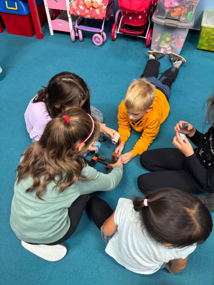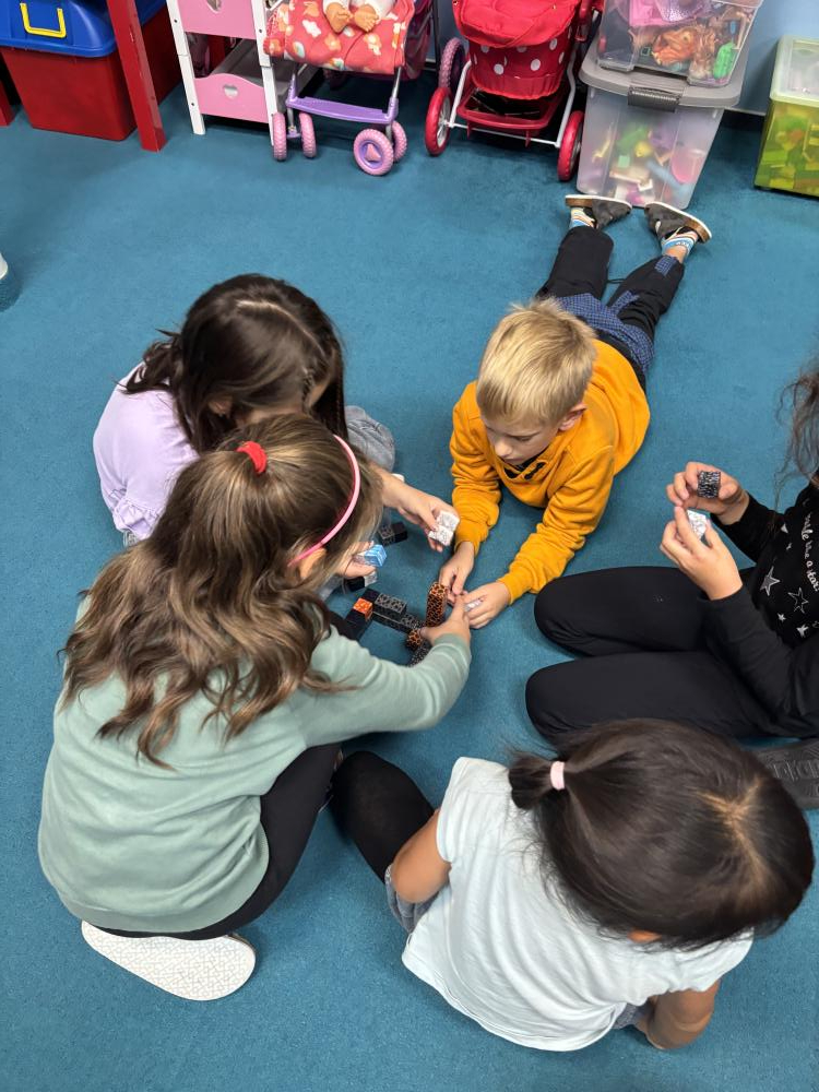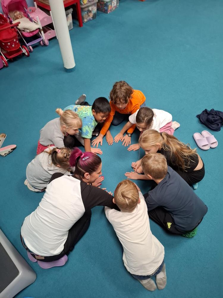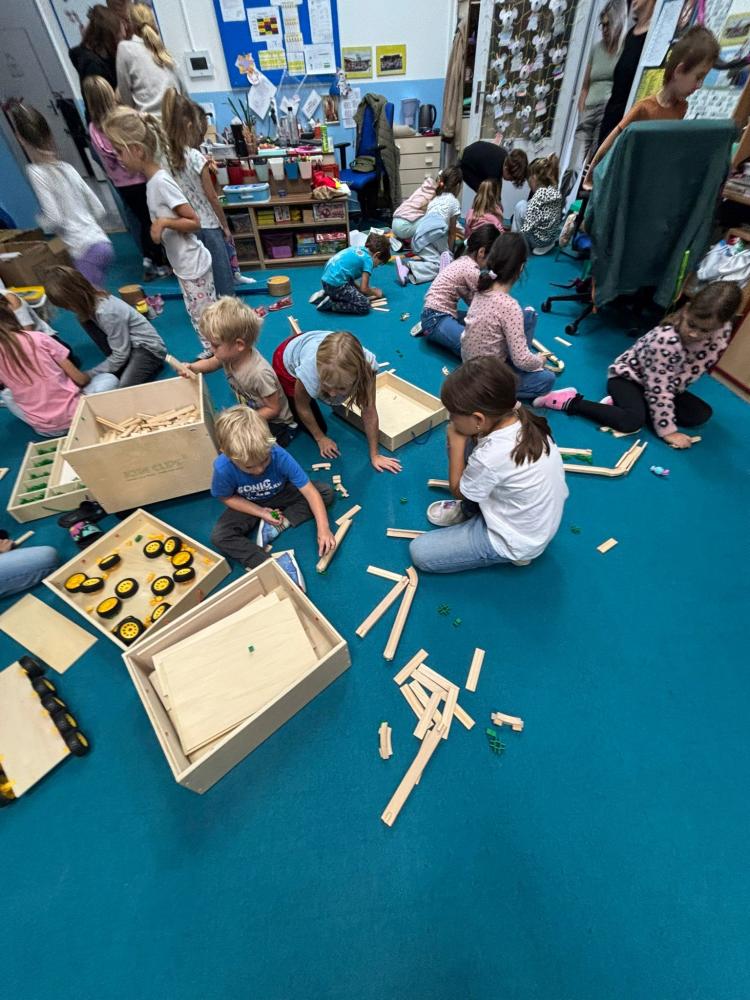 Nechyběly ani hudební chvilky. Děti si vyzkoušely hru na cajony, kde si společně zabubnovaly do rytmu známých písniček. V průběhu měsíce jsme se také učili nové básničky, které dětem pomáhají rozvíjet paměť a výslovnost. Protože pohyb je pro nás důležitý, hráli jsme různé pohybové hry a tancovali při oblíbených písničkách.