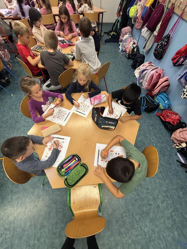 Říjen se ve školní družině nesl v duchu fialové barvy. Děti poznávaly tuto barvu ze všech stran – při tvoření, hrách i tanci. Vyráběli jsme různá díla z fialových odstínů, při kterých děti rozvíjely svou fantazii a zručnost.